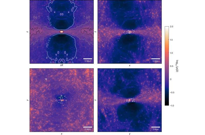 The algorithm started from regions in the early universe, with a mass distribution based on observations of the cosmic microwave background. With a powerful computer, the model then evolved to reproduce the present-day characteristics of the Local Group, with the mass, position and velocity of the Milky Way and the Andromeda galaxy, and the positions and velocities of 31 galaxies just outside the Local Group. This resulted in the creation of simulations that may be considered “virtual twins” of our cosmic environment.