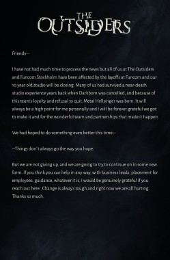 The Outsiders, studio behind Metal: Hellsinger, is being closed by Funcom (bsky.app) angielski